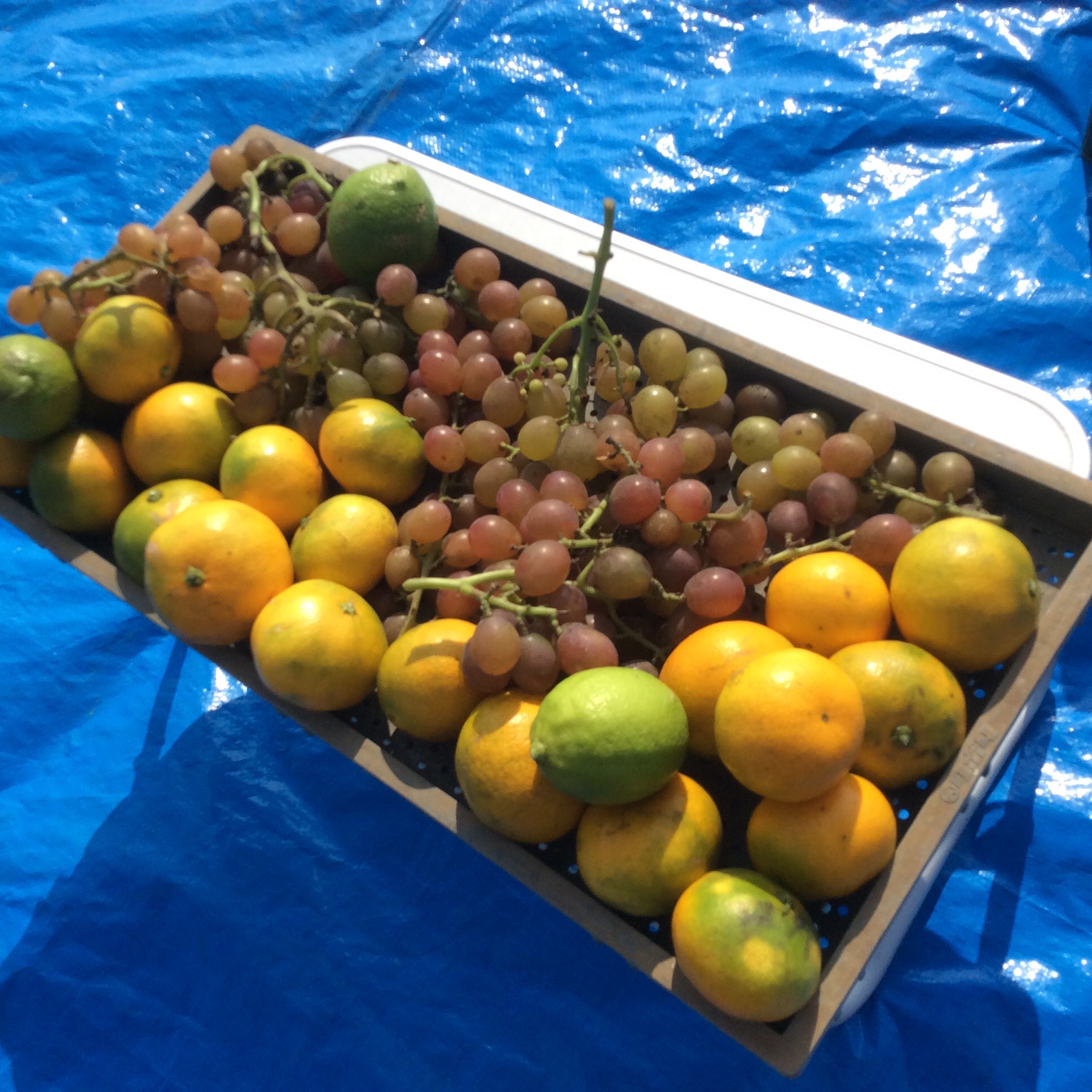 今回、緑川苺園さんのご好意でブドウやみかんの差し入れが。