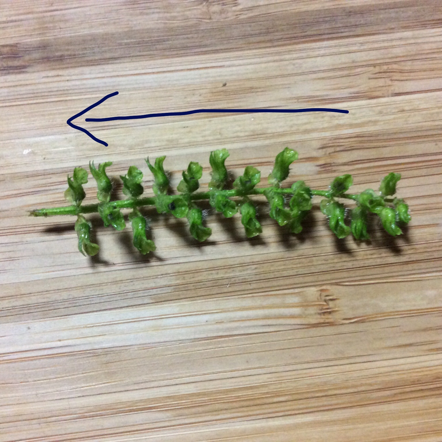 - 紫蘇を洗い、実を取る。上からしごくといい。