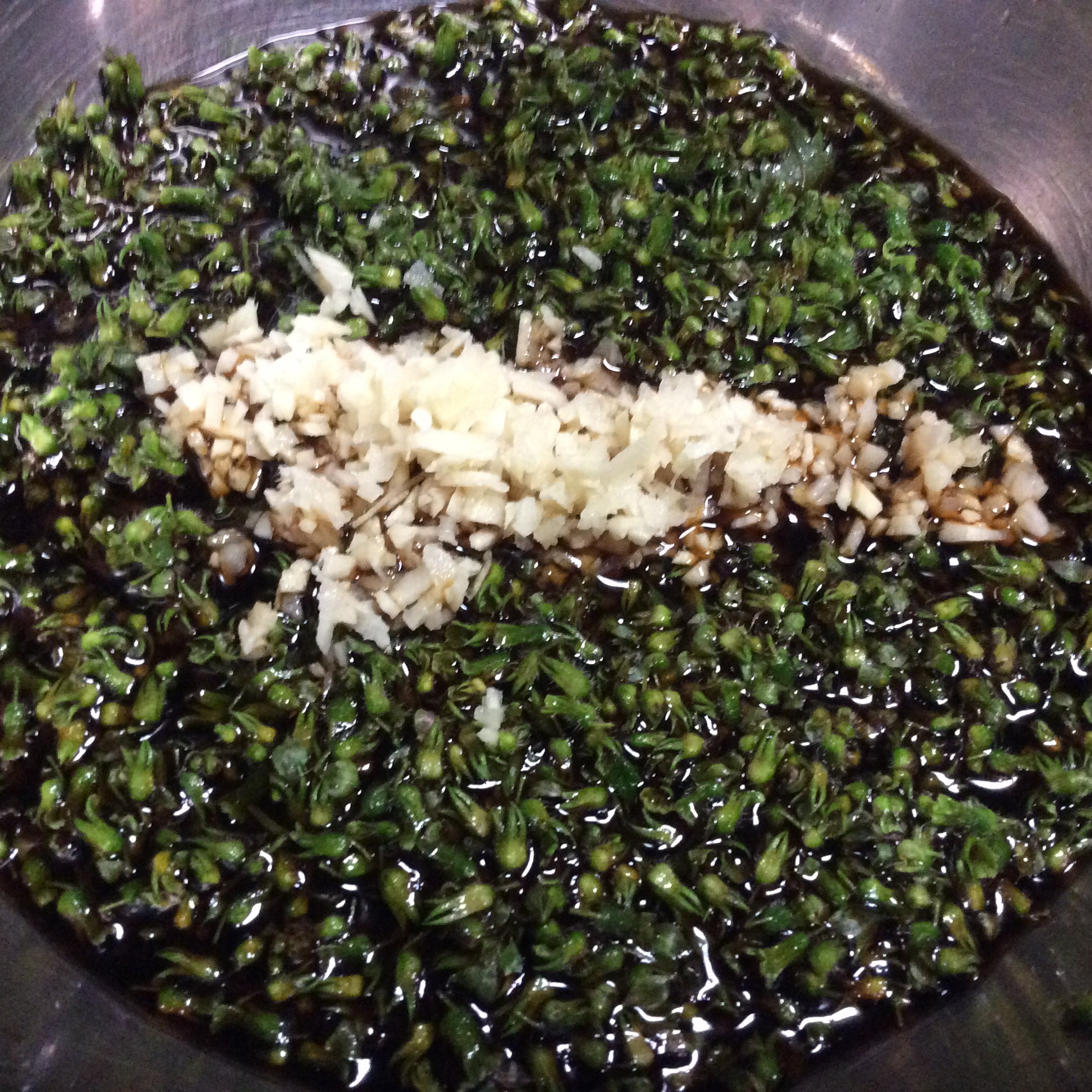 - 紫蘇がかぶるくらいの醤油とみじん切りした生姜を混ぜる